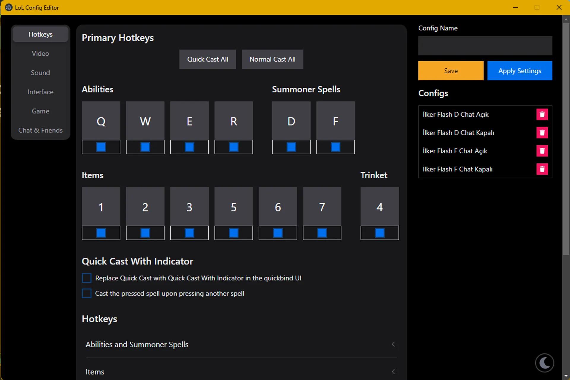 LoL Config Editor is a lightweight desktop app that lets you create named profiles for every playstyle, account, or roommate, then activate any profile with one click. Think of it as your personal “loadout switch” for League settings.